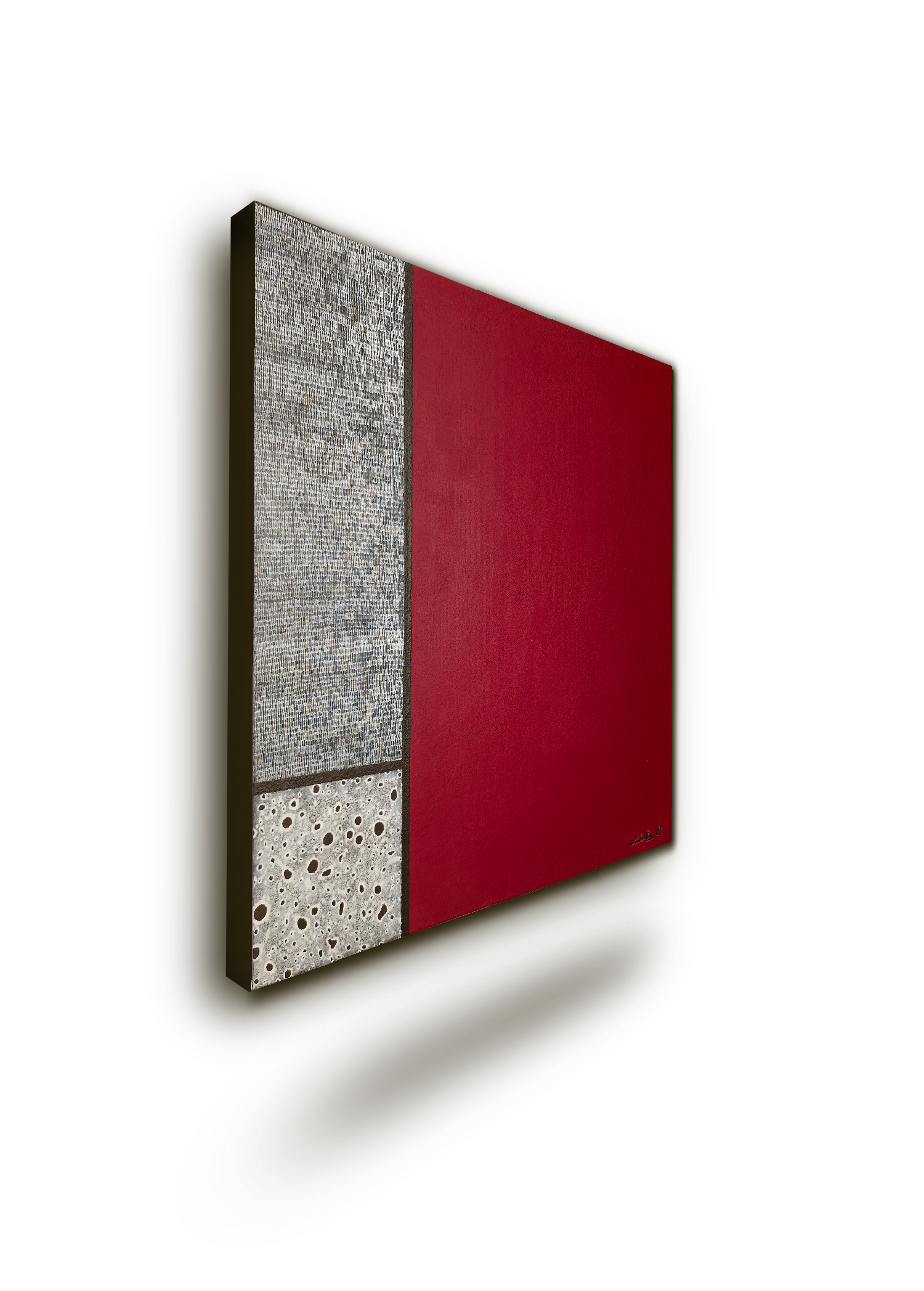 Cette peinture originale rouge, ponctuée de marron et de traits blancs, s’intitule Carré de Soie. Cette œuvre unique, réalisée à l’acrylique en 2024, s’inscrit dans une recherche d’abstraction expressive et maîtrisée. L’équilibre esthétique naît ici d’une tension entre la force d’un rouge flamboyant et la profondeur chromatique des tons neutres. C’est une pièce de caractère qui impose sa propre temporalité à l’espace qu’elle occupe.