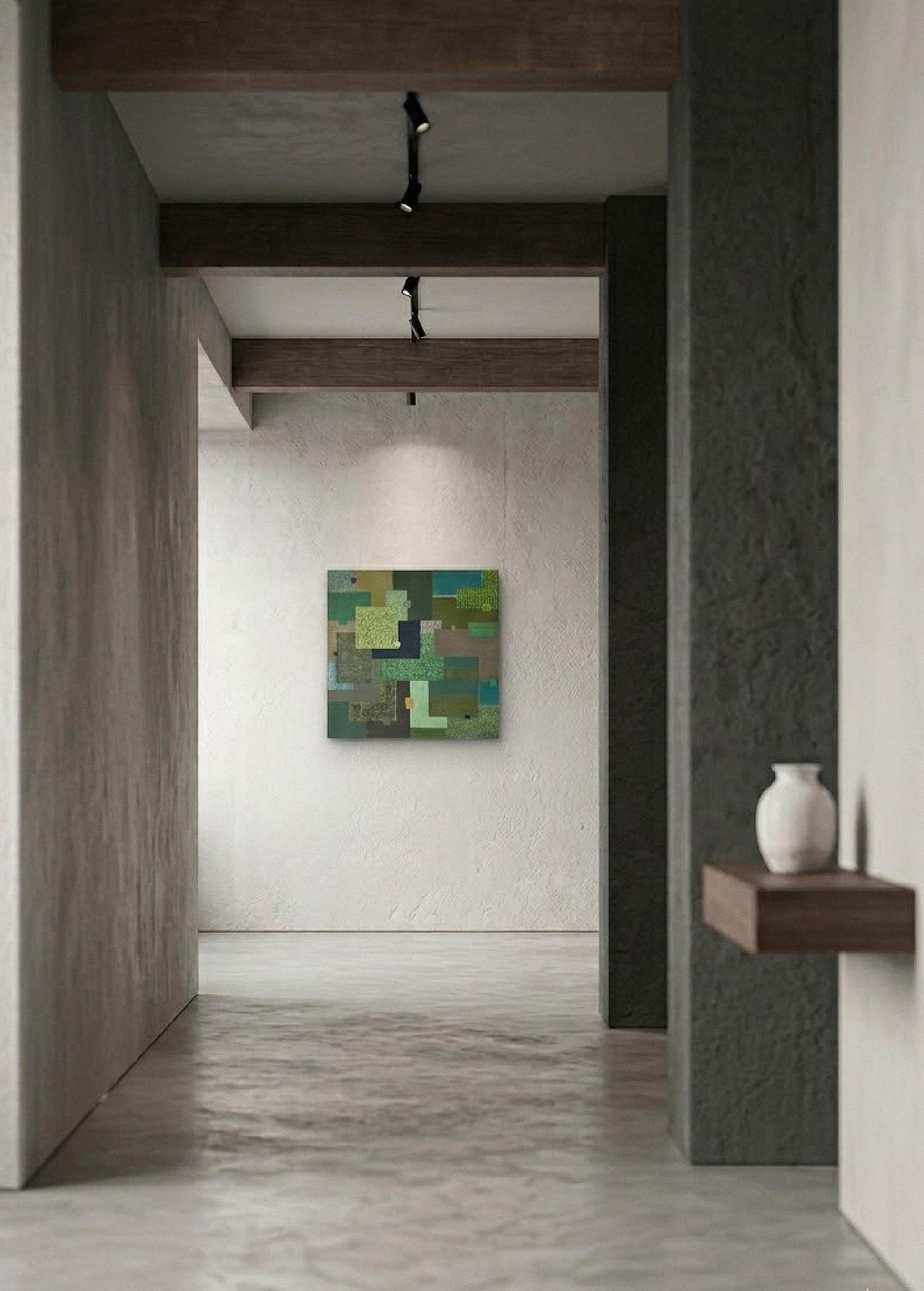 Cette peinture originale verte, intitulée Oscillation Chlorophyllienne, est une pièce maîtresse de la collection 2024. Cette œuvre unique explore la dualité entre géométrie et vibration organique. Elle est réalisée à l’acrylique sur un châssis 3D de 50×50 cm. La narration visuelle se déploie par une recherche chromatique intense. En effet, les pigments semblent entrer en résonance pour capturer l’essence du vivant.